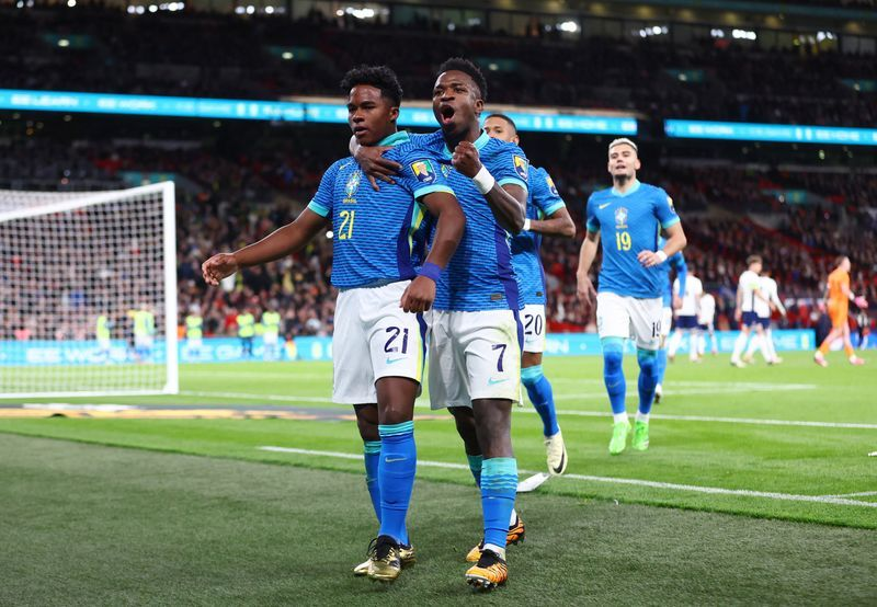 Brasil celebrate at Wembley – Vinicius Junior and 17 year old Endrick.
